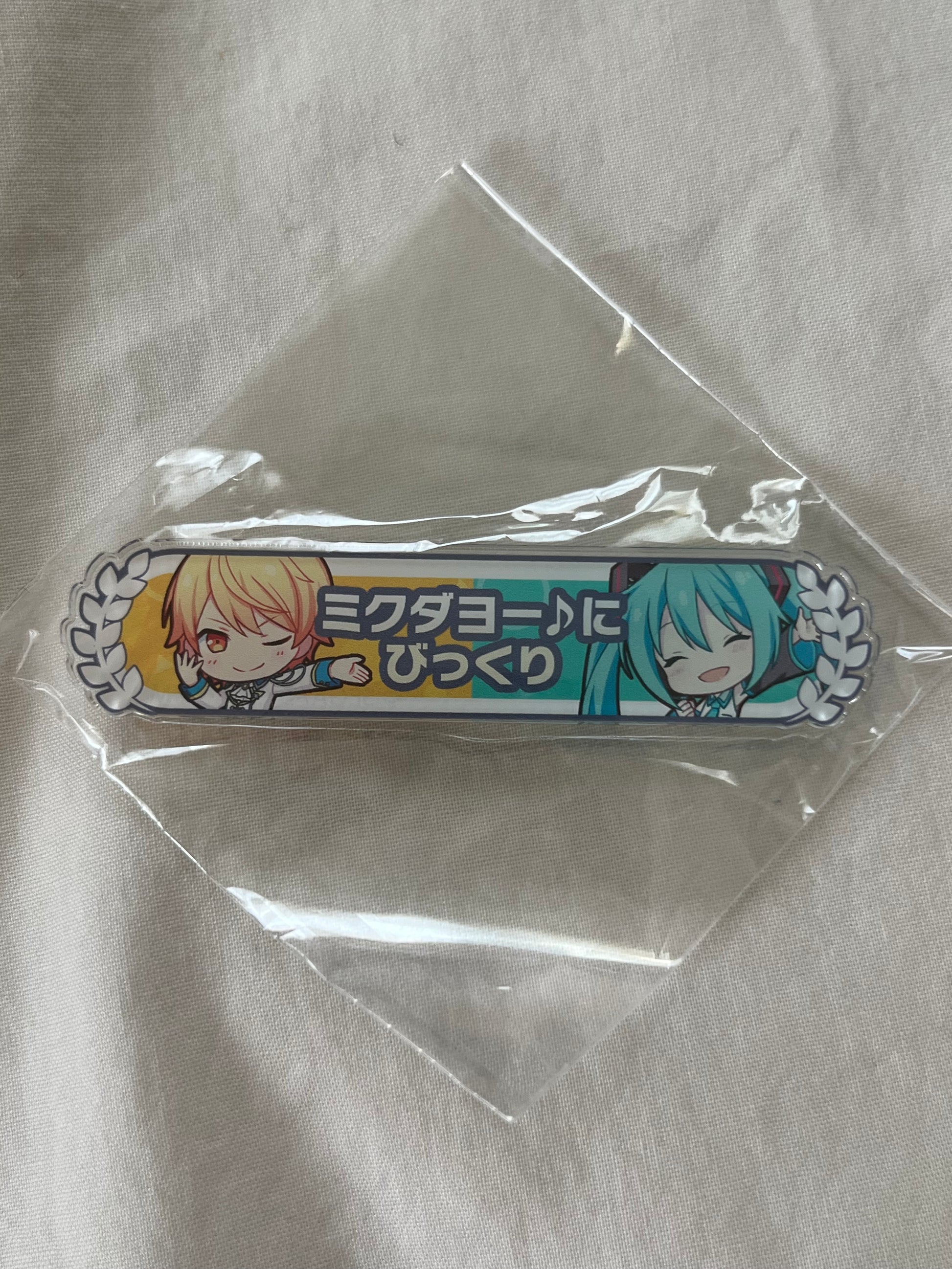 Tsukasa Tenma & Hatsune Miku “Scared by Mikudayo” Kizuna Rank Acrylic Badge